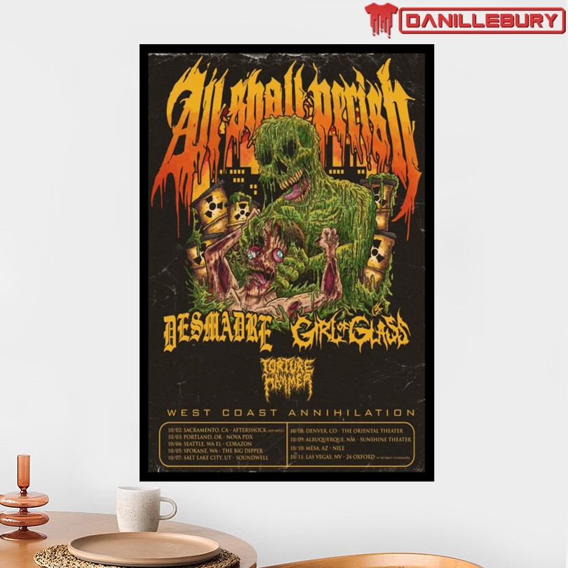 metal music poster, limited edition poster, rock vibes decor, metalhead gift idea, music history memorabilia, collectible concert poster, All Shall Perish merchandise, October 2025 tour poster, exclusive rock band poster, unique wall art design, vibrant concert memorabilia, metal music fan gift, tour merchandise collection, metal poster art print, rock music souvenir, heavy metal band memorabilia, concert tour keepsake, October 2025 gig poster