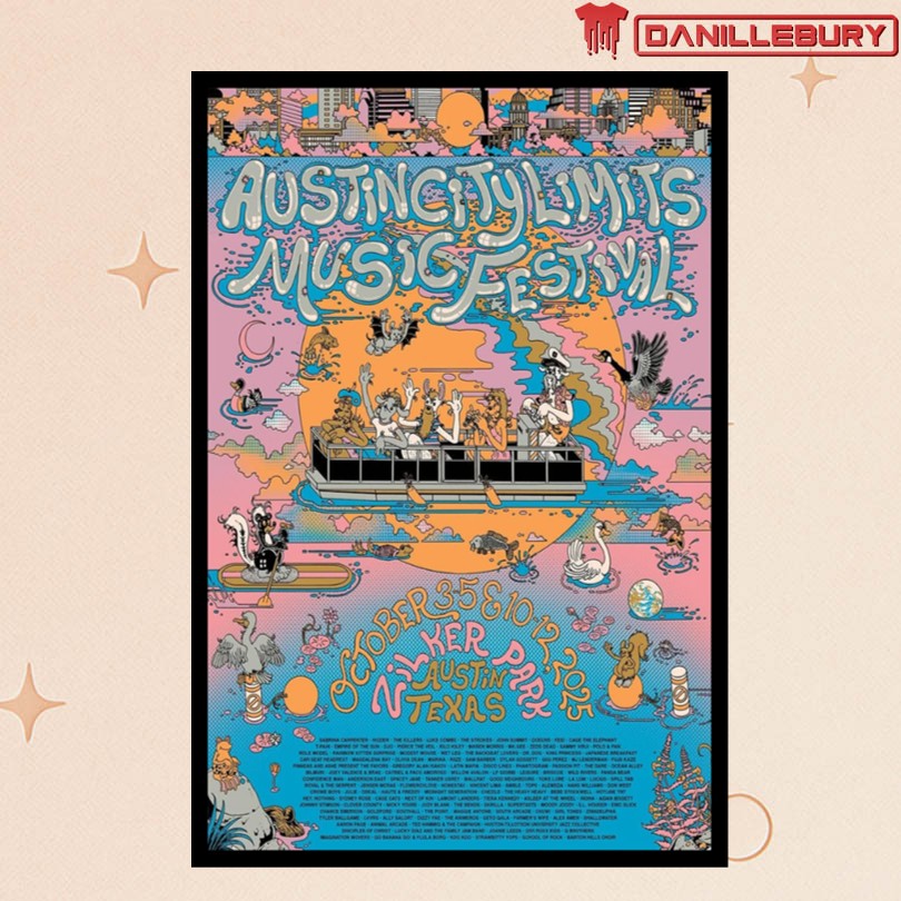 Austin City Limits poster, Austin TX art print, October 2025 festival memorabilia, iconic landmarks design, vibrant music art, exclusive collectible piece, high-quality print, music festival souvenir, Austin TX skyline artwork, eclectic vibe decoration, unique memorabilia collection, live music fan gift, Austin City Limits merchandise, festival poster decor, music and art enthusiast item, Austin TX event keepsake, limited edition print, Austin festival artwork, colorful city skyline poster.
