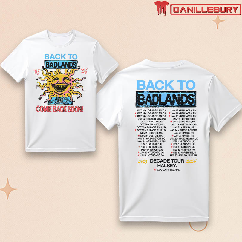 Halsey Badlands t-shirt, Back To Badlands shirt, Halsey concert tee, Decade Tour merchandise, Halsey fan apparel, Exclusive tour shirt, Halsey music merch, Limited edition Halsey shirt, Halsey tour memorabilia, Badlands tour souvenir, Halsey collectible tee, Concert goer fashion, Halsey tour clothing, Badlands album merchandise, Halsey fan gear, Official Halsey apparel, Pop music concert shirt, Halsey tour swag, Music festival outfit.