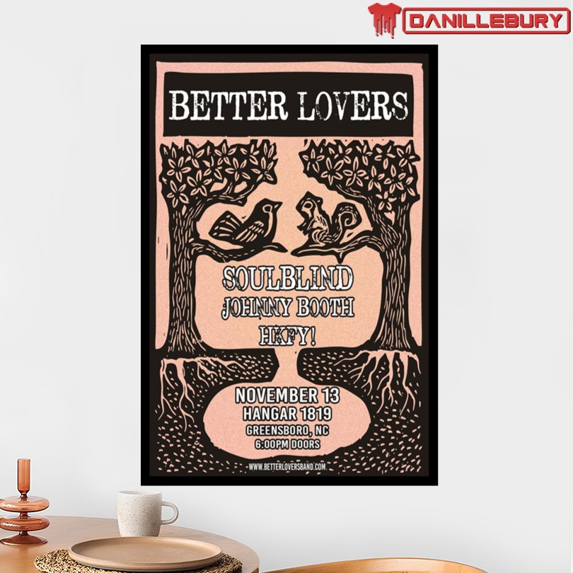 Better Lovers event poster, November 13th 2025, Greensboro, exclusive design, vibrant colors, premium quality, event memorabilia, limited edition, collectible item, fan merchandise, event keepsake, unique gift idea, event memento, artistic event poster, event souvenirs, event merchandise, event artwork, event decoration, event memorabilia print, event anniversary poster.