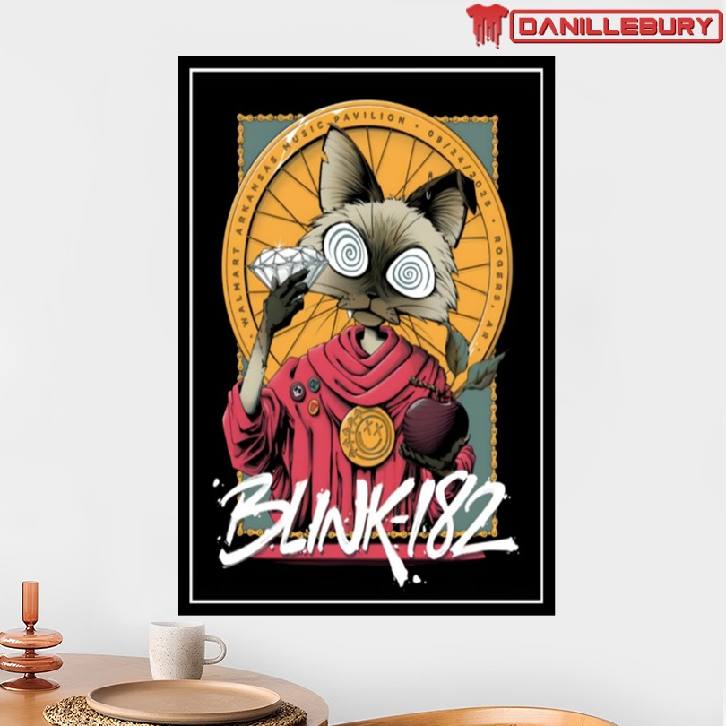 Blink-182 tour poster, September 24 2025, Rogers AR, concert memorabilia, exclusive design, limited edition, collectible item, music merchandise, band poster, commemorative artwork, rock concert keepsake, Blink-182 fan merchandise, concert memorabilia poster, tour memorabilia, music collectibles, vintage concert poster, Blink-182 artwork, event souvenir, rock band merchandise, concert poster print