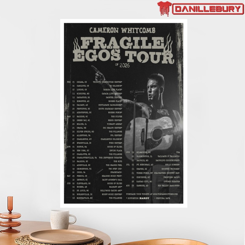 tour poster, Cameron Whitcomb, Fragile Egos, 2026 tour, music poster, fan memorabilia, concert keepsake, wall decor, vibrant colors, tour merchandise, music lover gift, Cameron Whitcomb poster, collectible item, room decoration, studio accessory, concert memento, memorabilia gift, musician merchandise, tour memorabilia, event souvenir