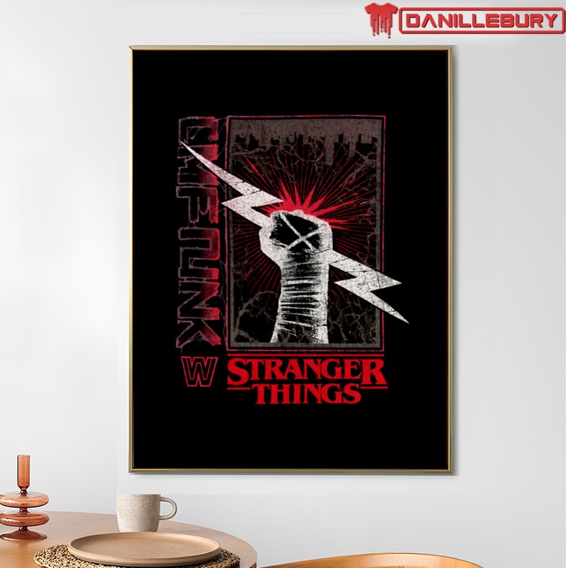 wwe stranger things shirt, cm punk crossover tee, wrestling sci-fi t-shirt, unique pop culture top, fan merchandise clothing, official licensed apparel, graphic print shirt, themed crossover merchandise, stylish fandom wear, wrestling fan gift, sci-fi lover present, trendy collaboration tee, collectible mashup t-shirt, statement pop culture clothing, supernatural wrestler shirt, fashionably geeky top, retro TV show merchandise, exclusive limited edition tee, nostalgia inspired apparel