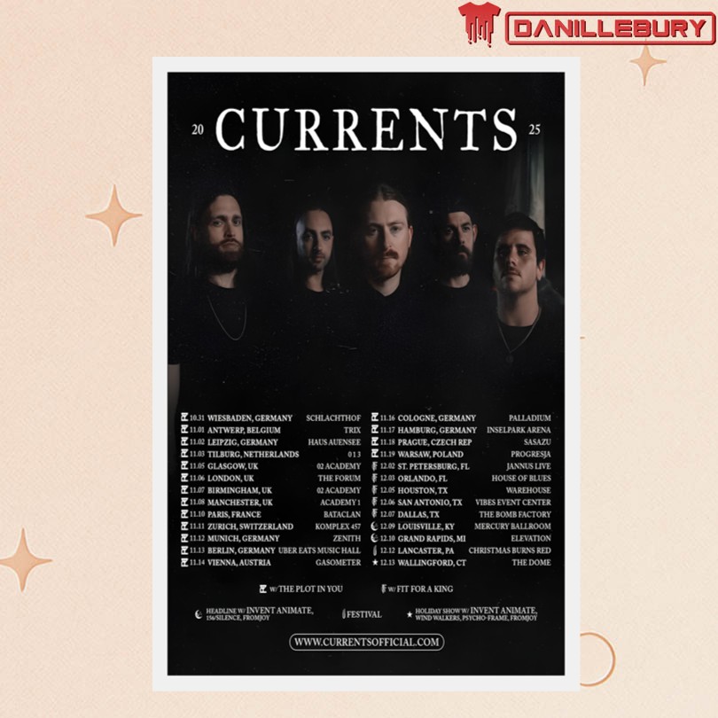 2025 tour dates poster, Currents band schedule, vibrant band tour poster, Currents band collectible print, 2025 concert calendar art, music memorabilia wall art, Currents tour dates memorabilia, limited edition band poster, Currents fan merchandise, graphic design concert poster, 2025 music tour collectible, Currents band memorabilia print, band tour schedule artwork, unique band poster design, Currents tour merchandise, collectible concert poster print, Currents 2025 tour calendar, artistic music memorabilia, Currents band tour schedule poster