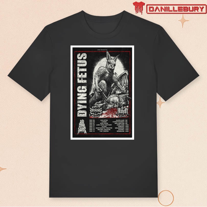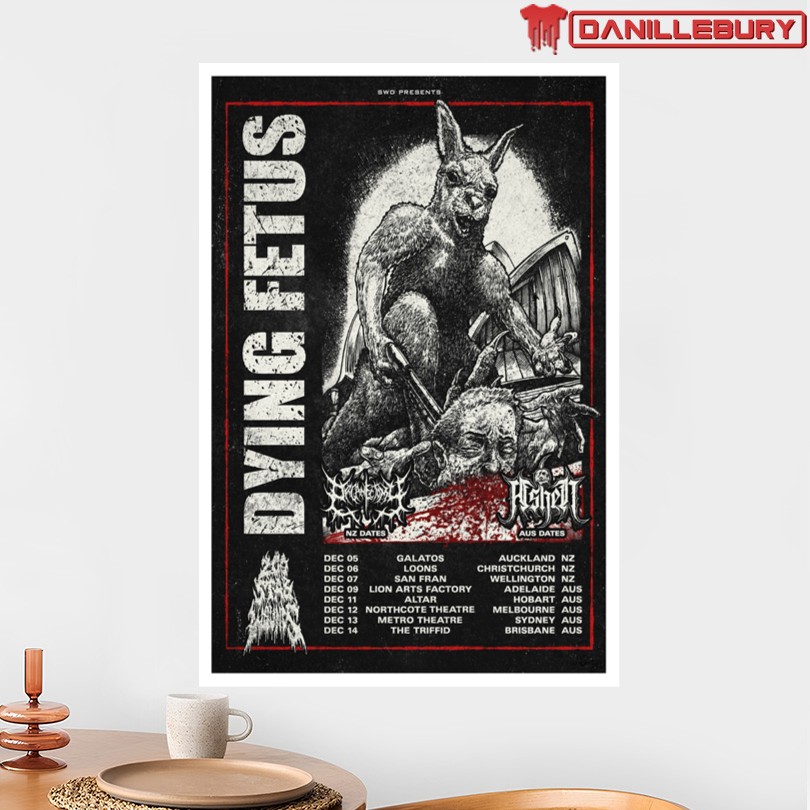 dying fetus tour poster, december 2025, new zealand, australia, limited edition, metal music, fan merchandise, concert memorabilia, collectible poster, tour dates, metal band, music merchandise, exclusive design, wall art, tour announcement, band merchandise, metal music fan, concert poster, tour memorabilia