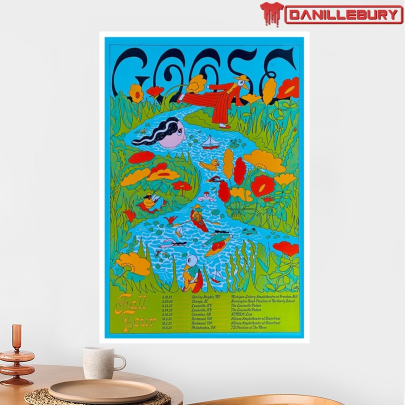 fall tour poster, goose 25, goose band merchandise, concert memorabilia, goose poster print, music fan decor, exclusive band poster, vibrant tour poster, high-quality print, intricate design details, goose fan collectible, artistic room decor, concert memento, music memorabilia art, band tour merchandise, goose fan gift, collectible poster print, unique band poster, limited edition design, goose tour memorabilia