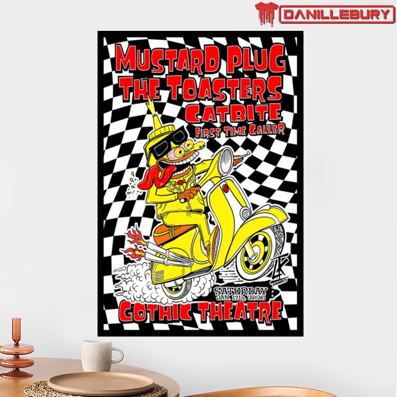 Capture the essence of this unique event with the Mustard Plug, The Toasters, Catbite & First Time Caller Jan 17, 2026, Gothic Theatre Poster. This exclusive poster commemorates a one-of-a-kind lineup featuring these legendary bands performing on January 17, 2026. The vibrant design and high-quality printing make it a must-have for any music enthusiast or collector. Hang it in your room, studio, or office to showcase your love for ska music and memorable live performances. Add a touch of retro style to your space and relive the energy of this exceptional show every day.