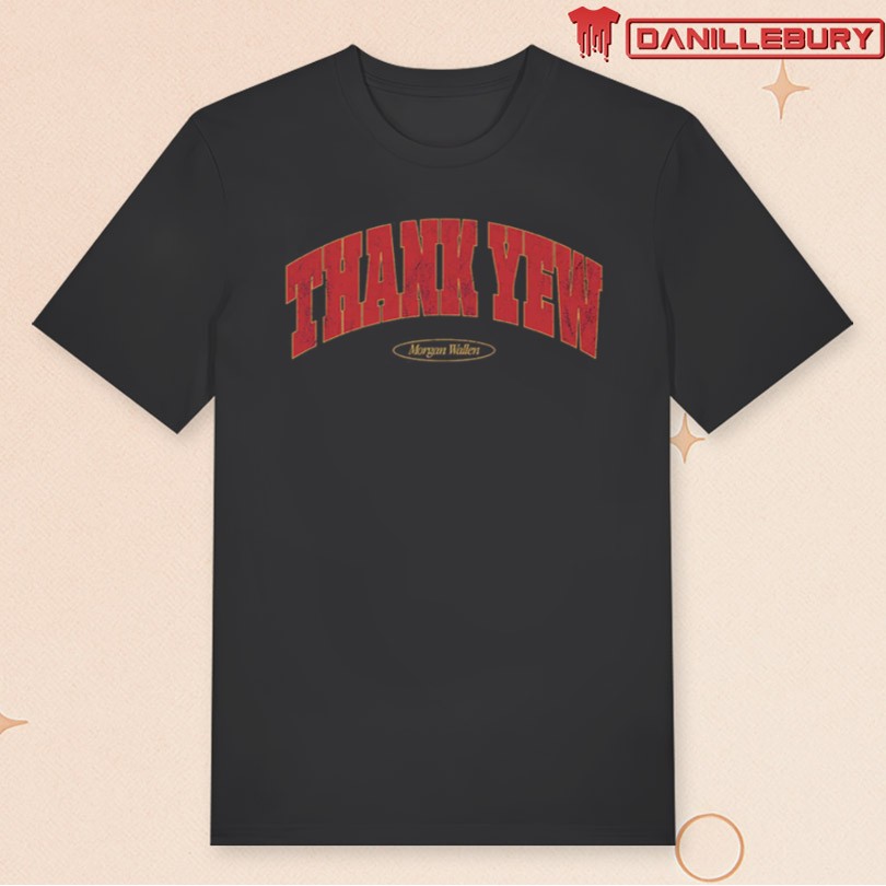 Celebrate your love for country music with the Official Morgan Wallen Thank Yew T-Shirt. This classic black tee features a bold design on the front, showcasing Morgan Wallen’s signature style. Made from soft and durable cotton fabric, this shirt is perfect for everyday wear or concerts. Whether you’re a long-time fan or just discovering his music, this t-shirt is a must-have addition to your wardrobe. Show your support for Morgan Wallen in style and comfort with this officially licensed Thank Yew t-shirt.
