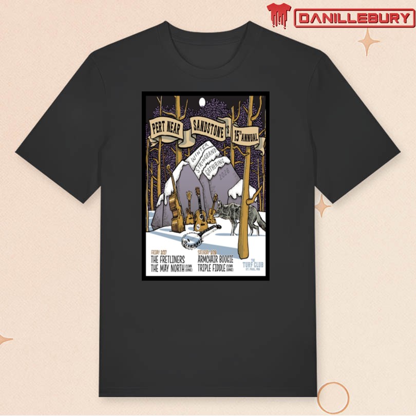 folk music festival poster, Pert Near Sandstone artwork, collectible music event print, folk band memorabilia, 15th Annual Gathering design, vibrant concert poster, music lover gift, unique wall art, folk music decor, limited edition print, band merchandise, event souvenir, folk music fan poster, decorative concert print, music festival keepsake, Pert Near Sandstone 2026, folk music concert memorabilia, band event poster, music festival artwork.