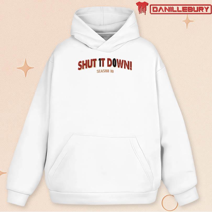 shut it down season 10 tee, exclusive graphic print shirt, comfortable cotton t-shirt, premium fan apparel, iconic show merchandise, durable fabric for longevity, bold graphic tee design, fan favorite season 10, trendy tv show tee, statement piece clothing, binge-watching outfit essential, comfortable fan gear, iconic television show merchandise, premium quality tee, exclusive fan collection item, stylish show memorabilia, fan wardrobe essential, must-have fan merchandise, trendy graphic tee style