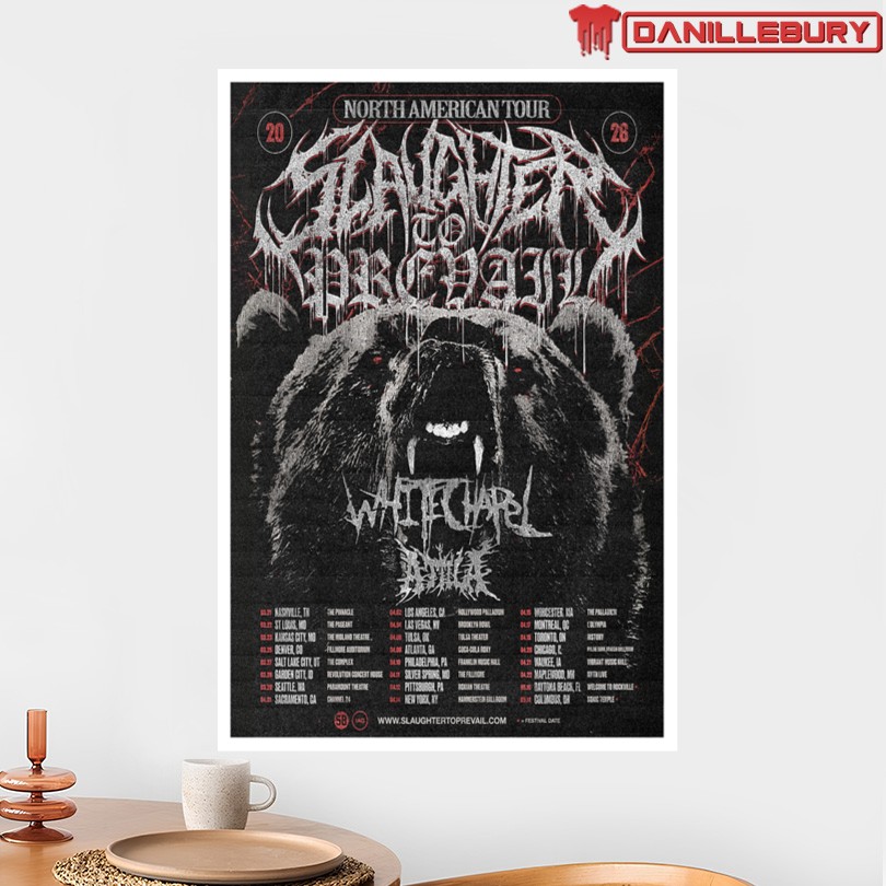 Slaughter To Prevail poster, North America tour, 2026, limited edition, metal music, band artwork, high-quality print, wall art collection, poster collector, exclusive design, music merchandise, collectible item, tour memorabilia, metal band poster, concert souvenirs, graphic art print, music fan decor, tour keepsake, metal music artwork.