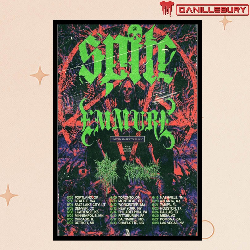 Grab this exclusive Spite Emmure Psycho-Frame Rev3rent 2026 US Tour Poster to commemorate the iconic tour. Featuring striking visuals and premium quality, this poster is a must-have for any fan. The intricate details and vibrant colors make it a standout piece for your collection or to adorn your space. Perfect for framing or displaying as is, this limited edition poster captures the essence of the tour in a unique way. Don’t miss out on owning a piece of metalcore history with this collectible poster!