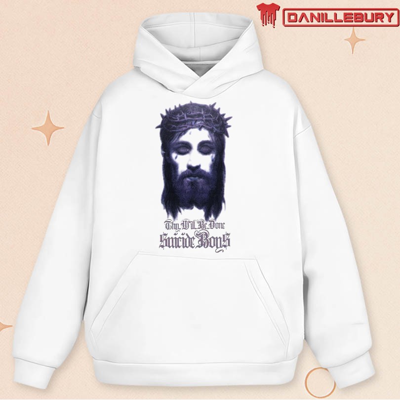 suicideboy t-shirt, Thu Will Be Done shirt, rebellious graphic tee, edgy streetwear top, unique design apparel, bold statement clothing, concert outfit, expressive fashion piece, high-quality material shirt, comfortable street style, individuality showcase top, standout rebellious tee, striking design garment, alternative music merchandise, punk rock band shirt, urban fashion wear, underground culture clothing, trendy graphic top, cool street style apparel