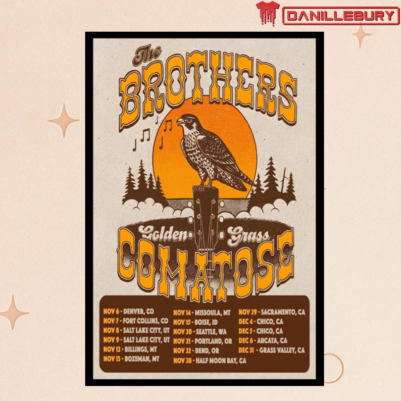 concert poster, The Brothers Comatose, Fall 2025, music memorabilia, band poster, collectible art, concert tour merchandise, wall decor, fan merchandise, vibrant colors, intricate design, music room decoration, home decor, office decor, commemorative poster, live music memorabilia, exclusive design, high-quality print, band merchandise, framed poster