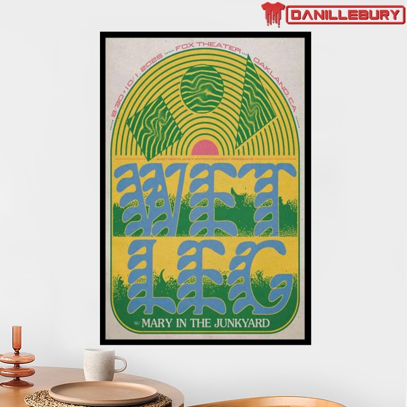 Wet Leg concert poster, Sept 30-Oct 1 2025, Fox Theater Oakland CA, Limited edition collectible, Vibrant design captures energy, High-quality paper printing, Perfect for framing, Music memorabilia keepsake, Home office decor, Music room wall art, Wet Leg fan merchandise, Concert poster art print, Exclusive event souvenir, Oakland CA concert memorabilia, Commemorative music poster, Live performance memento, Collectible band merchandise, Unique concert keepsake, Limited edition music poster.